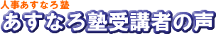 | 他の講座よりもオーソドックス(形式的)でなさそうな点を理由として先生の講座を選択しましたが、小生の選択は正しかったように思います。まだ楠田式、弥富式などの賃金の考え方の本質をマスターしておりませんが、なによりもあすなろの柔軟性を評価したいと思います。これからも人事コンサルタントとしてあすなろ塾で学んだ知識をフルに活用するとともに一層の向上に努めていきたいと念願しています。これまでは人事システムについて相談に応ずるなど恐れおおいいと思っておりましたが、あすなろ塾での小山先生、大津先生のご指導のお陰で自信をもって対応できるようになったことに心より厚くお礼申し上げたいと存じます。どうも有り難うございました。 |