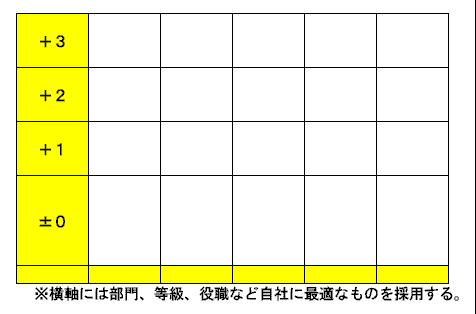 我々がこのような常識外れの人事評価制度を進めるようになったのは、先にも述べた既存の人事評価制度の限界に気づいたことと同時に以下の様な経緯があります。つまり当社でも様々な人事評価表を作成してきましたが、どのような方式を採用しても合理的に部門間調整ができないという課題にぶつかりました。つまり人事評価表を用いて点数化したとしても部門間の差は見ることができず、結局は全部門に目が届くトップが調整を行ってきました。ということは人事評価表はあくまでも評価結果を裏付けるための材料でしかないのではないか?それであればそもそも点数化することに意味はないのではないか?ということで評価するポイントをまとめたガイドラインを作成した上で相対評価を行い、それを評価結果認定の理由にしようしたらどうだろうか、という考えに至ったわけです。 さて具体的な認定方式人事評価制度の流れは以下の通りになります。 a)ガイドラインの作成(その他目標管理表などリソースの提供) 認定方式の基本は「相対評価で基準は作らない。評価の基準は現場で決めてもらって結構。但し会社を納得させる材料を出して来なさい。」というところにありますが、その理由付けを行う際にどのような手段が考えられるか、会社が評価者の相談に乗るということは重要です。つまり評価を行う際の視点(ガイドライン)を等級別などである程度作ったり、目標管理表などのツール(リソース)を提供することは実際の認定活動を行う際に有用です。このガイドラインは通常、「当社のハイパフォーマー(成績優秀者)の行動様式(具体的にどのような思考を持ち、どのような行動を取り、どのような結果を残しているか)」を明示することによって行います。なお目標管理表等のサンプルはこちらの書式集にあります。)