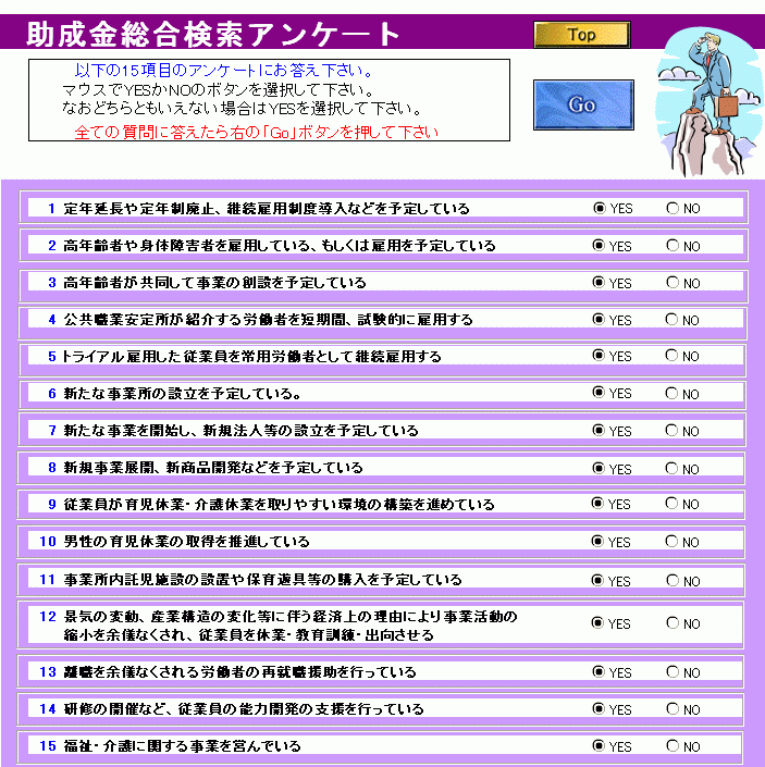 アンケートの回答や検索などの操作はすべてマウスでボタンを押すだけですので、キーボードに抵抗のある方でも簡単に自社で取得できる助成金を検索することができます。
