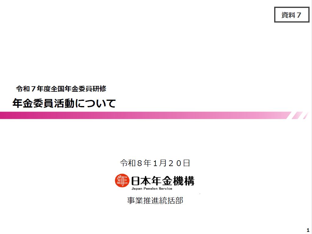 タイトル:令和7年度全国年金委員研修 年金委員活動について