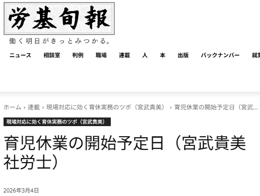 労基旬報2026年3月4日公開「育児休業の開始予定日」