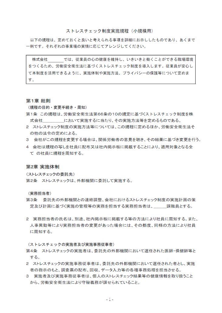 小規模事業場ストレスチェック制度実施マニュアルに掲載されているストレスチェック制度実施規程をword化したものです。
