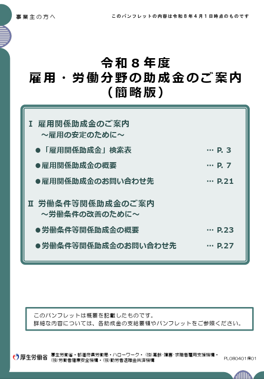 タイトル:令和8年度雇用・労働分野の助成金のご案内(簡略版)