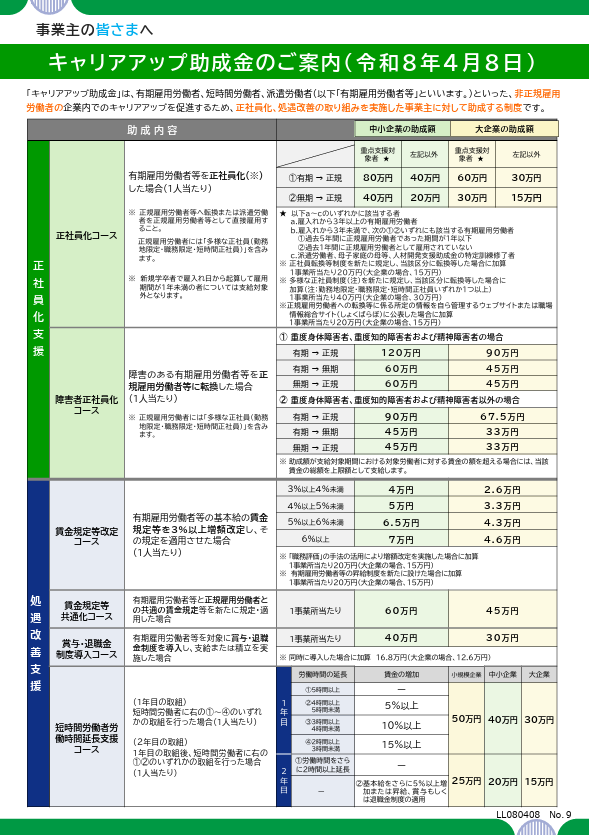 タイトル:事業主の皆さまへ キャリアアップ助成金のご案内(令和8年4月8日)