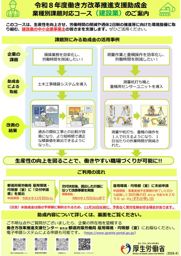 タイトル:令和8年度働き方改革推進支援助成金業種別課題対応コース(建設業)のご案内