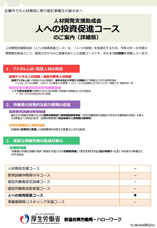 タイトル:人材開発支援助成金人への投資促進コースのご案内(詳細版)(2026年4月版)