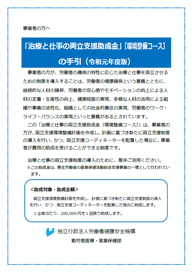 「治療と仕事の両立支援助成金」【環境整備コース】の手引(令和元年度版)