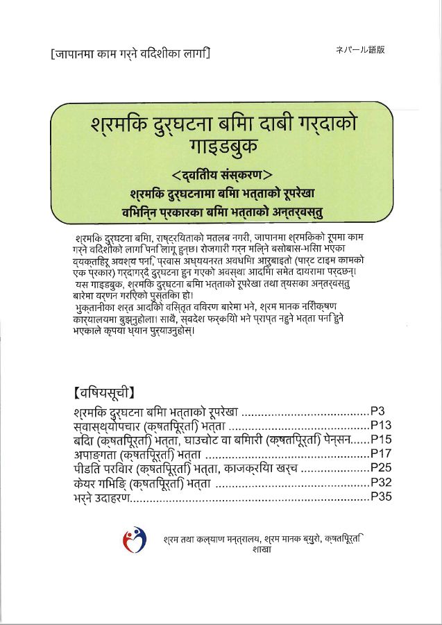 概要:労災保険で請求(申請)のできる保険給付などについてネパール語で、各給付ごとの詳細な内容を説明したリーフレット。