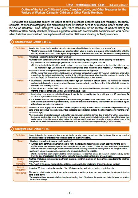 概要:育児・介護休業法の概要について簡単に説明したリーフレット。