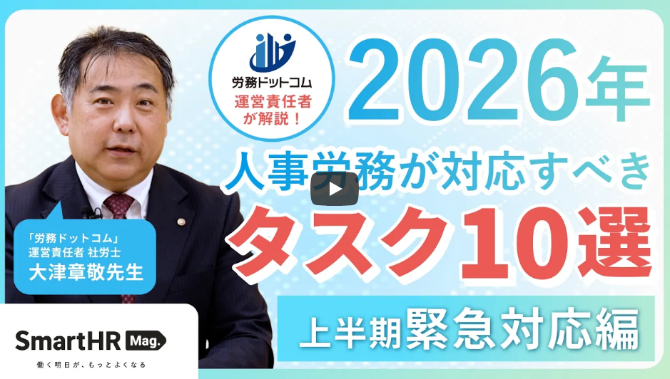 クラウド人事労務ソフトSmartHRが運営するYouTube 「SmartHR Mag.公式チャンネル」にて、社会保険労務士法人名南経営 代表社員の大津 章敬が2026年に人事労務担当者が注目すべき「ハラスメント防止措置 […]