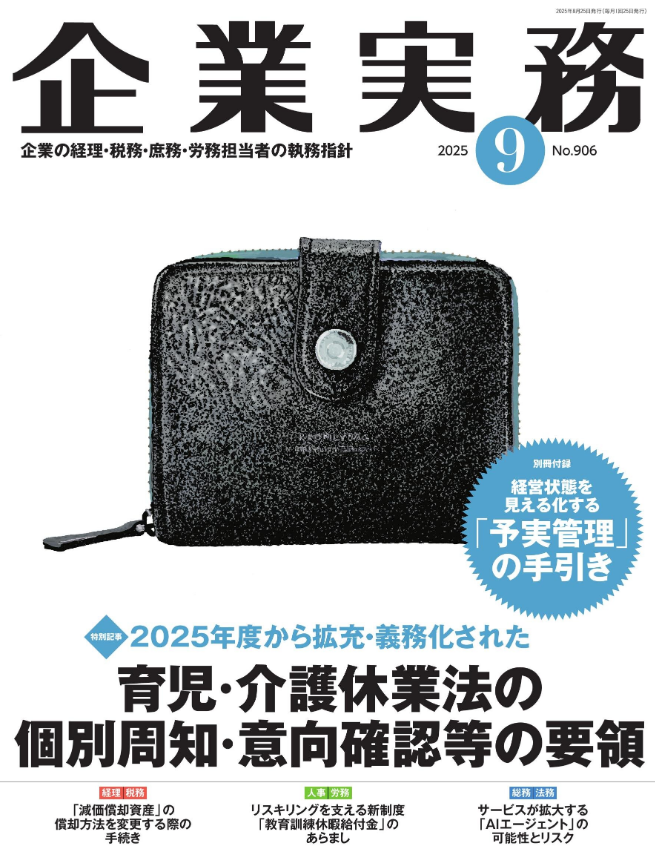 弊社特定社会保険労務士の宮武貴美が2025年9月号企業実務の特集記事にて「2025年度から拡充・義務化された育児・介護休業法の個別周知・意向確認等の要領」を執筆しております。 詳細は是非、誌面でご覧下さい。 参考リンク […]