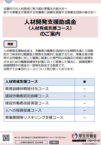 タイトル:人材開発支援助成金人への投資促進コースのご案内(詳細版)(2026年4月版) 発行者:厚生労働省・都道府県労働局・ハローワーク 発行時期:2026年4月 ページ数:65ページ 概要:このリーフレットは、人材開発 […]