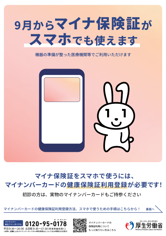 タイトル:9月からマイナ保険証がスマホでも使えます発行者:厚生労働省発行時期:2025年6月ページ数:2ページ概要:マイナンバーカードの健康保険証利用登録方法や、スマートフォンでマイナ保険証を使うための手順を案内したリー […]