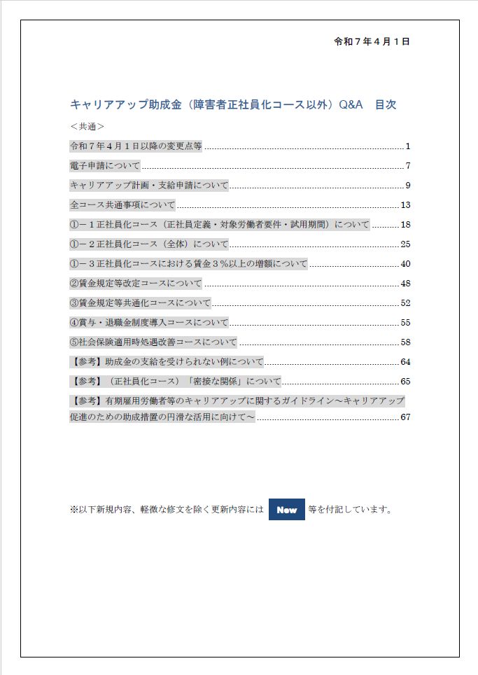 タイトル:キャリアアップ助成金(障害者正社員化コース以外)Q&A (2025年4月版) 発行者:厚生労働省・都道府県労働局・ハローワーク 発行時期:2025年4月 ページ数:70ページ 概要:キャリアアップ助成金 […]