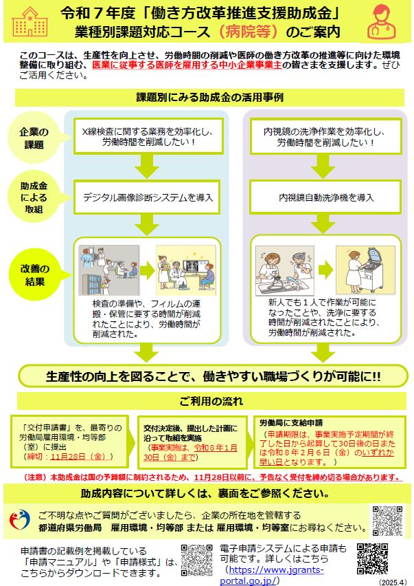 タイトル:令和7年度働き方改革推進支援助成金 業種別課題対応コース(病院等)のご案内 発行者:厚生労働省 発行時期:2025年4月 ページ数:2ページ 概要:「働き方改革推進支援助成金」 業種別課題対応コース(病院等)に […]