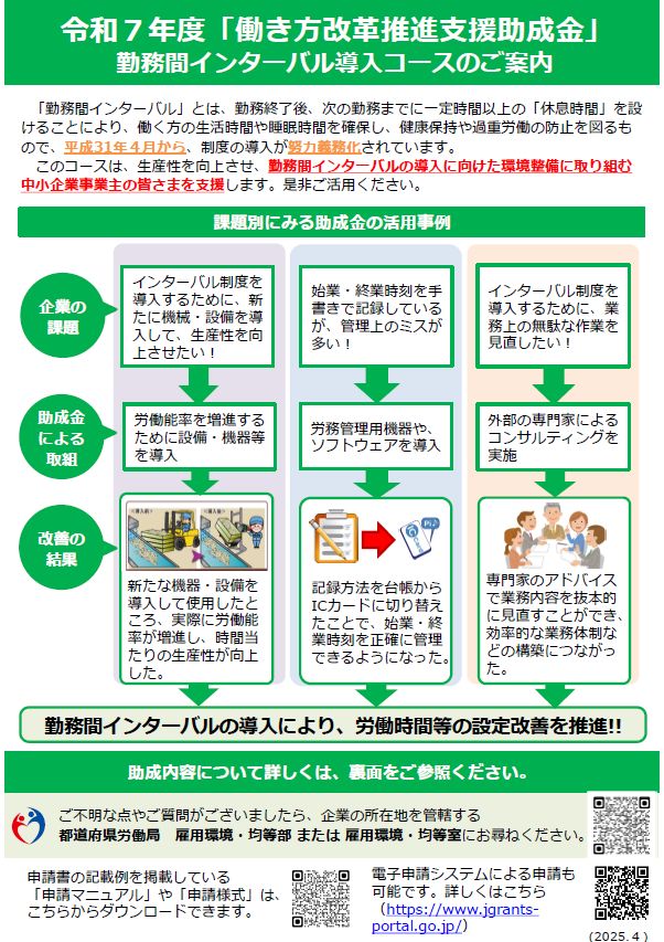 タイトル:令和7年度「働き方改革推進支援助成金」 勤務間インターバル導入コースのご案内 発行者:厚生労働省 発行時期:2025年4月 ページ数:2ページ 概要:「働き方改革推進支援助成金」 勤務間インターバル導入コースに […]