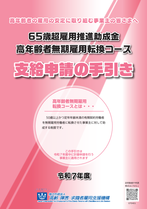 タイトル:65歳超雇用推進助成金 高年齢者無期雇用転換コース 支給申請の手引き(2025年4月版) 発行者:独立行政法人高齢・障害・求職者雇用支援機構 発行時期:2025年4月 ページ数:72ページ 概要:65歳超雇用推 […]