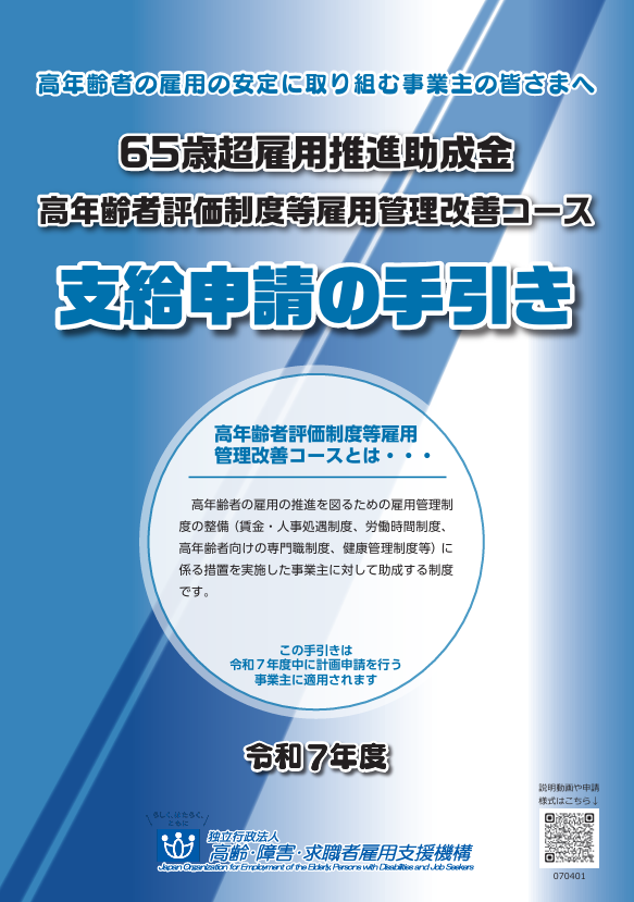 タイトル:65歳超雇用推進助成金 高年齢者評価制度等雇用管理改善コース 支給申請の手引き(2025年4月版) 発行者:独立行政法人高齢・障害・求職者雇用支援機構 発行時期:2025年4月 ページ数:78ページ 概要:65 […]