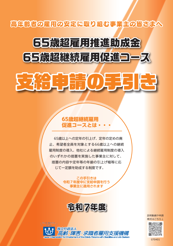 タイトル:65歳超雇用推進助成金 65歳超継続雇用促進コース 支給申請の手引き(2025年4月版) 発行者:独立行政法人高齢・障害・求職者雇用支援機構 発行時期:2025年4月 ページ数:80ページ 概要:65歳超雇用推 […]