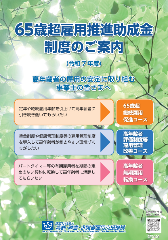タイトル:65歳超雇用推進助成金 制度のご案内(令和7年度) 発行者:独立行政法人高齢・障害・求職者雇用支援機構 発行時期:2025年4月 ページ数:12ページ 概要:65歳超雇用推進助成金の3つのコースの概要や、よくあ […]