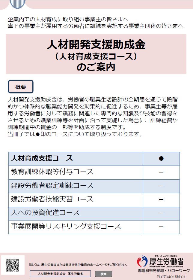 タイトル:人材開発支援助成金(人材育成支援コース)のご案内(2025年4月版) 発行者:厚生労働省 発行時期:2025年4月 ページ数:66ページ 概要:人材開発支援助成金(人材育成支援コース)について詳細に案内するリー […]