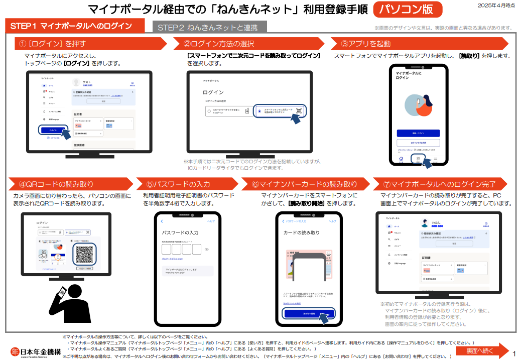 タイトル:マイナポータル経由での「ねんきんネット」利用登録手順(パソコン版)(2025年4月版) 発行者:日本年金機構発行時期:2025年4月ページ数:2ページ概要:パソコンでマイナポータル経由での「ねんきんネット」利用 […]