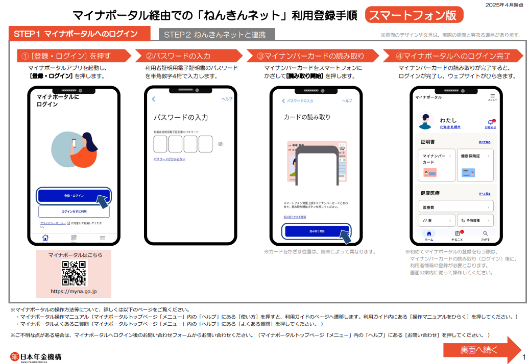 タイトル:マイナポータル経由での「ねんきんネット」利用登録手順(スマートフォン版)(2025年4月版) 発行者:日本年金機構発行時期:2025年4月ページ数:2ページ概要:スマートフォンでマイナポータル経由での「ねんきん […]