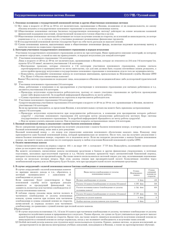 タイトル:日本の国民年金制度(ロシア語/2025年4月版)発行者:日本年金機構発行時期:2025年4月ページ数:2ページ概要:国民年金などの公的年金の概要、国民年金の加入者や加入手続きなど、日本の国民年金制度の仕組みにつ […]
