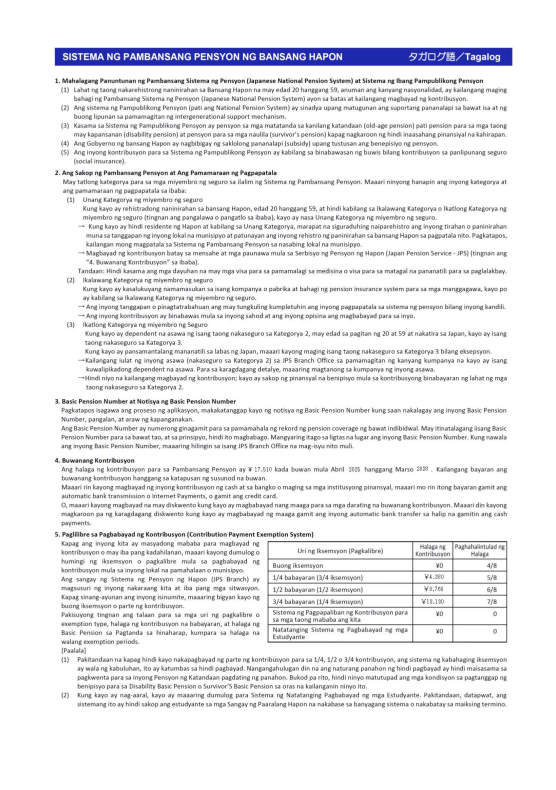 タイトル:日本の国民年金制度(タガログ語/2025年4月版)発行者:日本年金機構発行時期:2025年4月ページ数:2ページ概要:国民年金などの公的年金の概要、国民年金の加入者や加入手続きなど、日本の国民年金制度の仕組みに […]