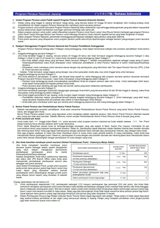 タイトル:日本の国民年金制度(インドネシア語/2025年4月版)発行者:日本年金機構発行時期:2025年4月ページ数:2ページ概要:国民年金などの公的年金の概要、国民年金の加入者や加入手続きなど、日本の国民年金制度の仕組 […]