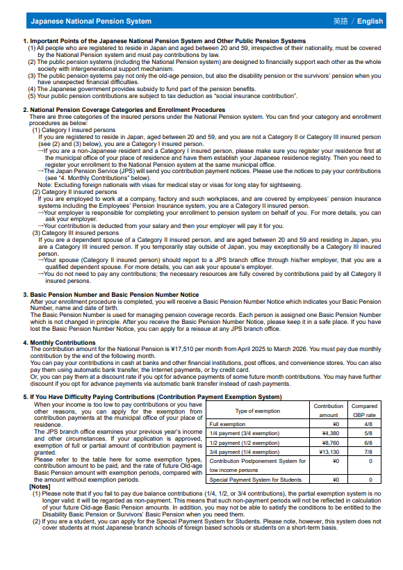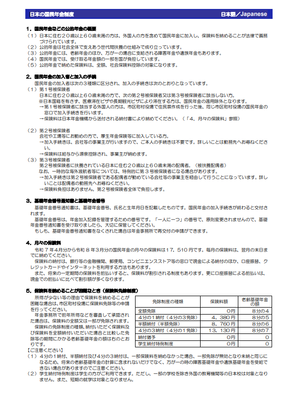 タイトル:日本の国民年金制度(日本語/2025年4月版)発行者:日本年金機構発行時期:2025年4月ページ数:2ページ概要:国民年金などの公的年金の概要、国民年金の加入者や加入手続きなど、日本の国民年金制度の仕組みについ […]