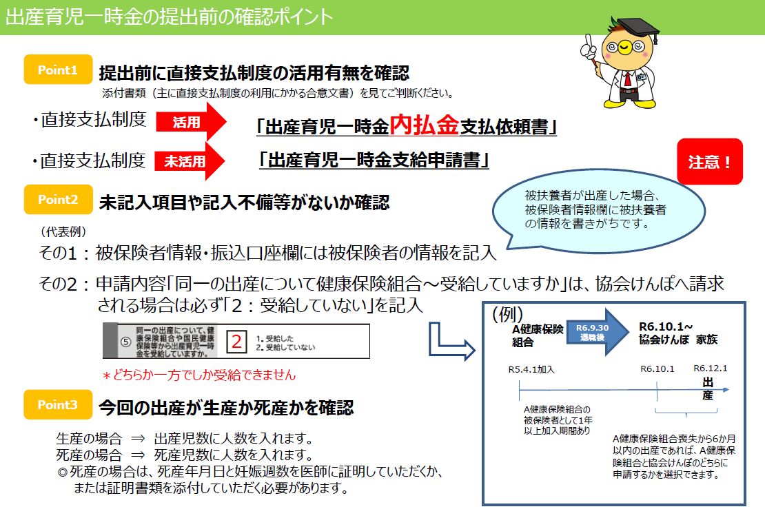 タイトル:「出産育児一時金申請書」記載時のポイント 発行者:全国健康保険協会 発行時期:2025年3月 ページ数:4ページ 概要:このリーフレットは、出産育児一時金の提出前の確認ポイントについて説明している。直接支払制度 […]