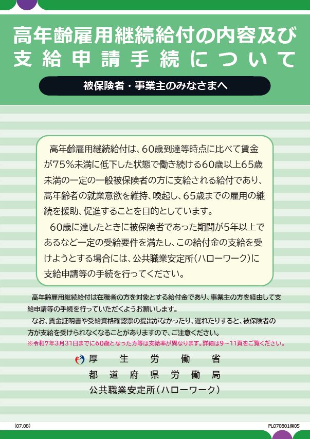 タイトル:高年齢雇用継続給付の内容及び支給申請手続について 発行者:ハローワークインターネットサービス 発行時期:2025年8月 ページ数:20ページ 概要:このリーフレットは、高年齢雇用継続給付の内容と支給申請手続きに […]