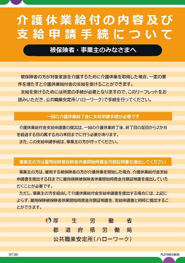 タイトル:介護休業給付の内容及び支給申請手続について 発行者:ハローワークインターネットサービス 発行時期:2025年8月 ページ数:8ページ 概要:このリーフレットは、介護休業給付の内容と支給申請手続きについて詳しく説 […]