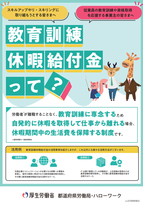 タイトル:教育訓練給付金って?発行者:厚生労働省発行時期:2025年9月ページ数:2ページ概要:このリーフレットは、教育訓練休暇給付金制度について説明している。この制度は、労働者が自発的に教育訓練に専念するために無給の休 […]