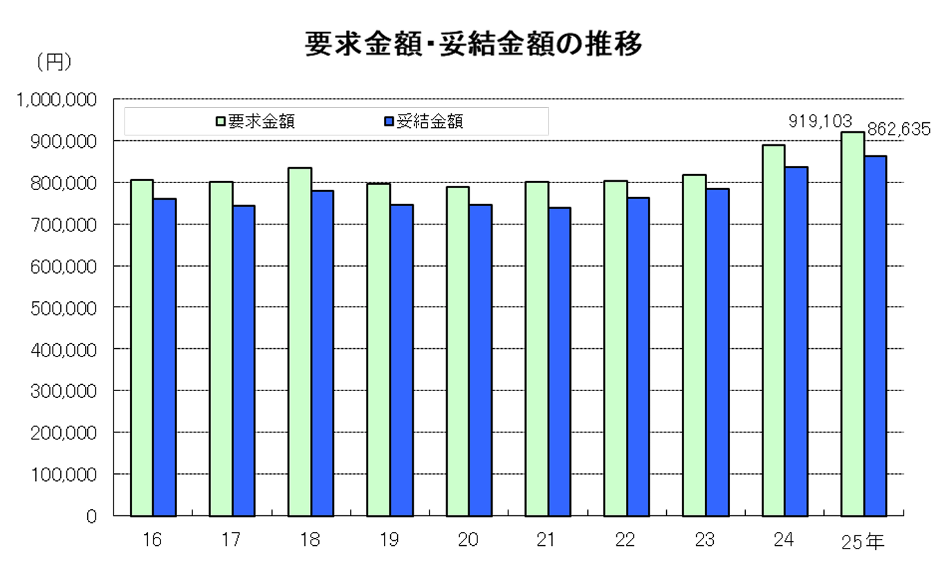 都内労働組合の2025年冬季賞与平均妥結額は対前年比3.02%増の894,645円