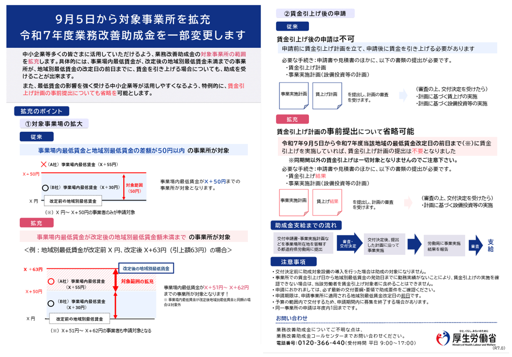 今年度は過去最大規模の最低賃金の引き上げが行われ、企業の負担も非常に大きなものとなっています。国としては助成金等による支援を予告していましたが、先週金曜日(2025年9月5日)、厚生労働省から、最低賃金の引上げに向けた […]