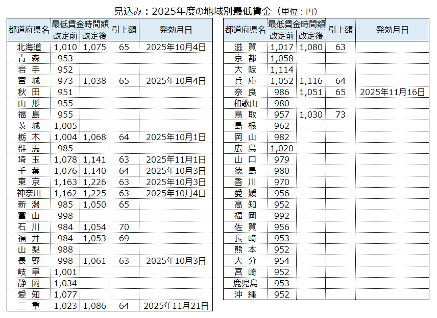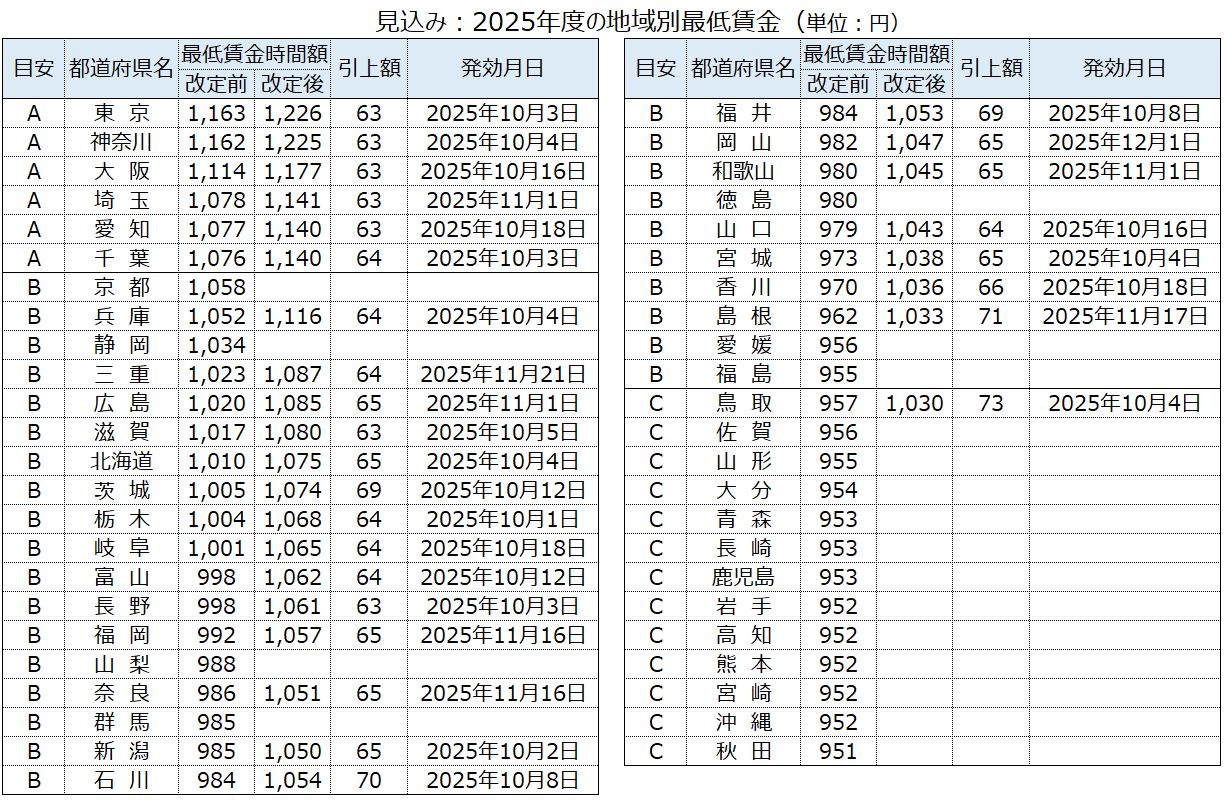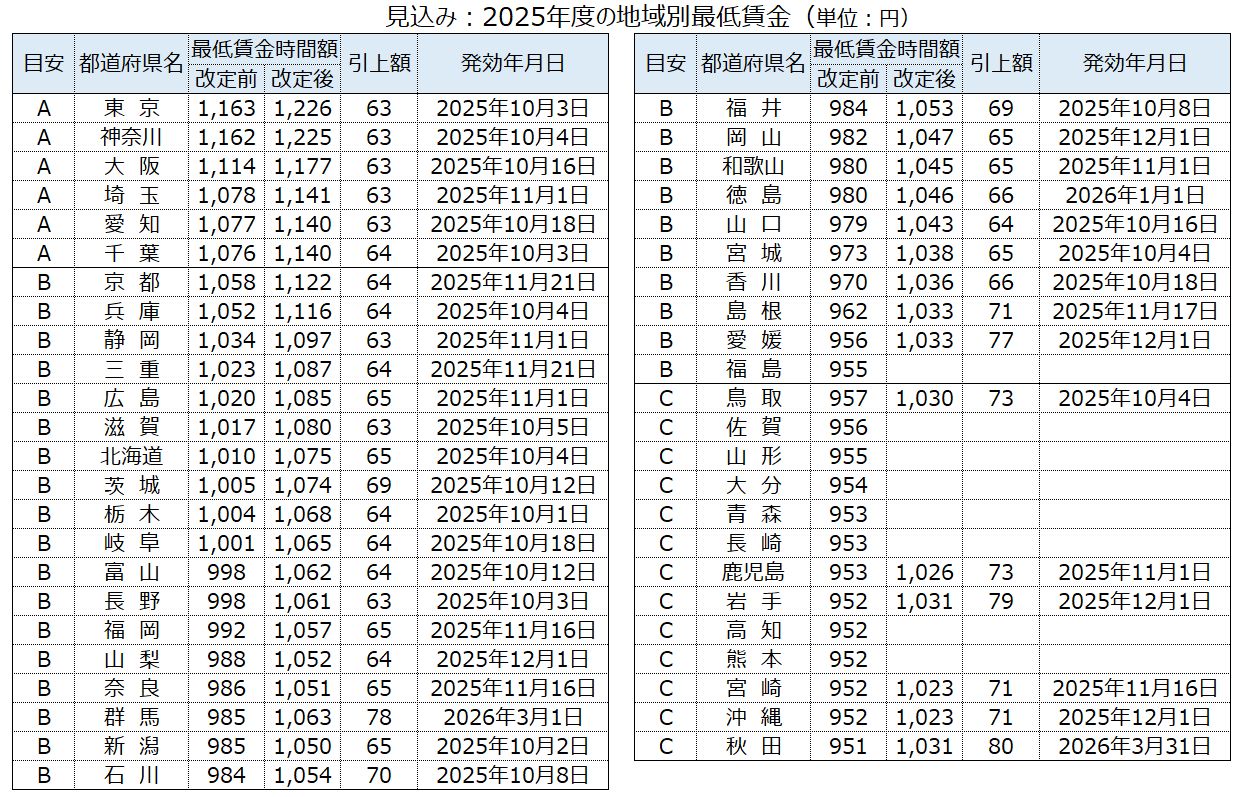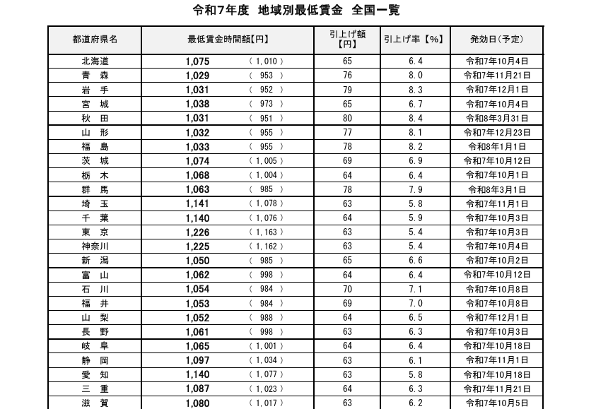 過去最大の引き上げとなった今年度の地域別最低賃金ですが、いよいよ本日(2025年10月1日)の栃木県を皮切りに、順次、発効されます。今週、新しい最低賃金が発行されるのは以下の各県となります。対応漏れがないように確実にチ […]