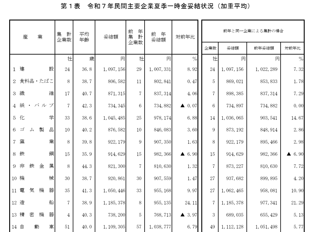 厚生労働省から、令和7年 民間主要企業夏季一時金妥結状況が公表されました。この調査の対象は、妥結額などを把握できた、資本金10億円以上かつ従業員1,000人以上の労働組合のある企業342社となっていますので、大手企業の […]