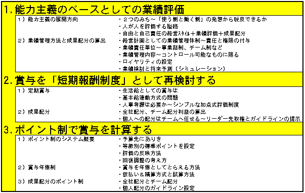 ・自由と自己責任の経営スタイル+業績評価+成果配分