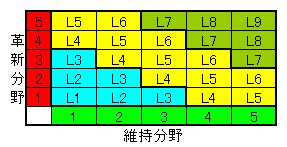 ・メインマトリクスの軸を考える〜代表的な2つの切り口で構成(維持と革新、業績と組織対応力、ベースとニューベース、質と量、等々)