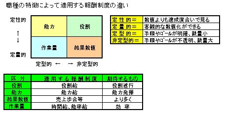 ・判断基準=勤続、能力、役割(責任)、実績数値